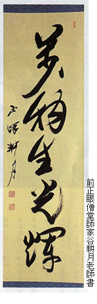 Everything of the world is brilliant by oneself. It is not a kind of an illusion coming out of during single night. "Everything" is not only the thing which is a plus for oneself and a convenient thing. A bad thing of the thing circumstances that are a minus is included for oneself. If you try to stand in ground of realization of Zen, you will surely understand that it is right. Not to mention a thing and the matter that you contact with close, everything of this space is brilliant. |